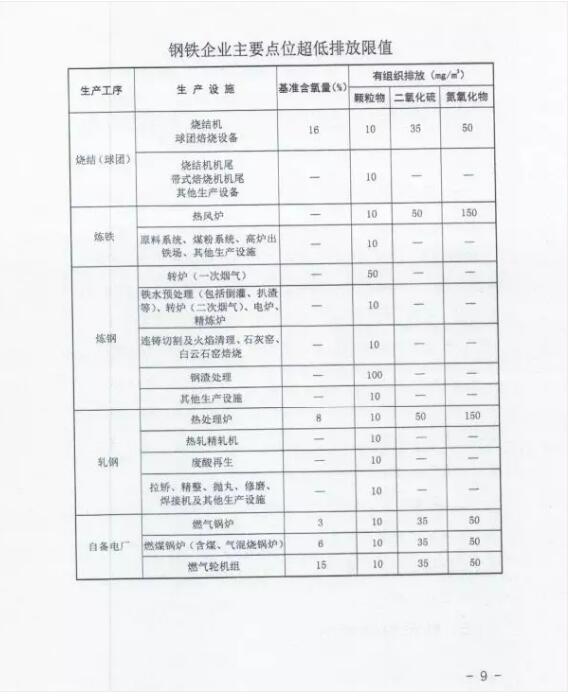 2018年10月底前,全市所有鋼鐵企業(yè)(含獨立球團、高爐鑄造企業(yè),下同)全部達到超低排放水平(限值參照驗收標準,通過168小時運行且第三方監(jiān)測達標,95%以上小時均值排放達標),并完成濕煙氣脫白治理,凡達不到標準的實施停產整治。