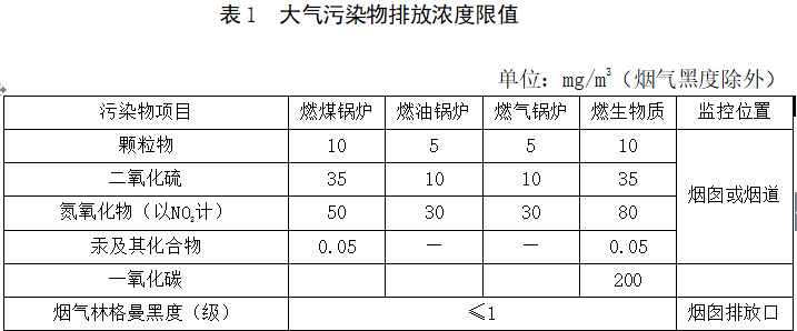 河北省生物質(zhì)鍋爐大氣污染物排放控制要求