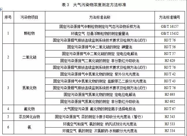 5.2.5 對大氣污染物排放濃度的測定采用表3所列的方法標準。