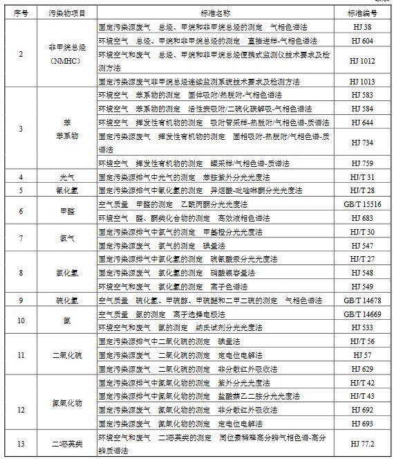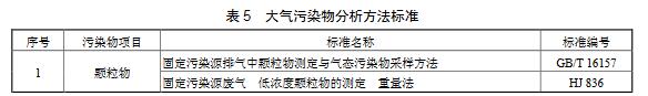 7.2.3 大氣污染物的分析測定采用表5中所列的方法標(biāo)準(zhǔn)。