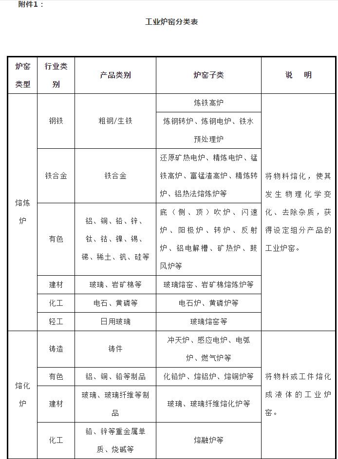 附件:1.工業(yè)爐窯分類表