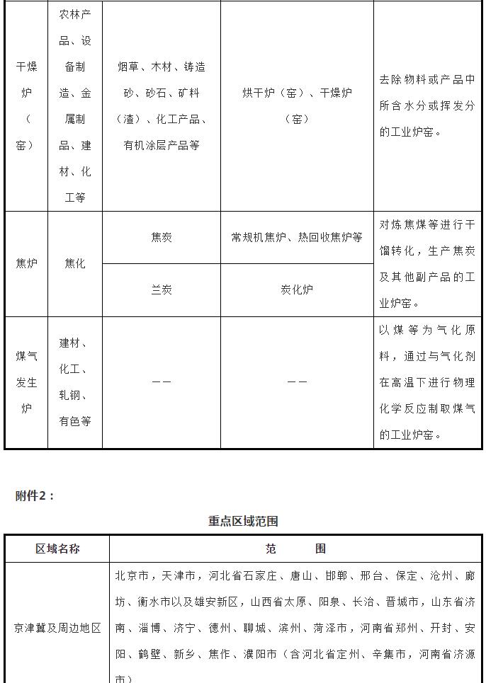 (一)主要目標(biāo)。到2020年,完善工業(yè)爐窯大氣污染綜合治理管理體系,推進(jìn)工業(yè)爐窯全面達(dá)標(biāo)排放,京津冀及周邊地區(qū)、長三角地區(qū)、汾渭平原等大氣污染防治重點(diǎn)區(qū)域(以下簡稱重點(diǎn)區(qū)域,范圍見附件2)工業(yè)爐窯裝備和污染治理水平明顯提高,實(shí)現(xiàn)工業(yè)行業(yè)二氧化硫、氮氧化物、顆粒物等污染物排放進(jìn)一步下降,促進(jìn)鋼鐵、建材等重點(diǎn)行業(yè)二氧化碳排放總量得到有效控制,推動環(huán)境空氣質(zhì)量持續(xù)改善和產(chǎn)業(yè)高質(zhì)量發(fā)展。