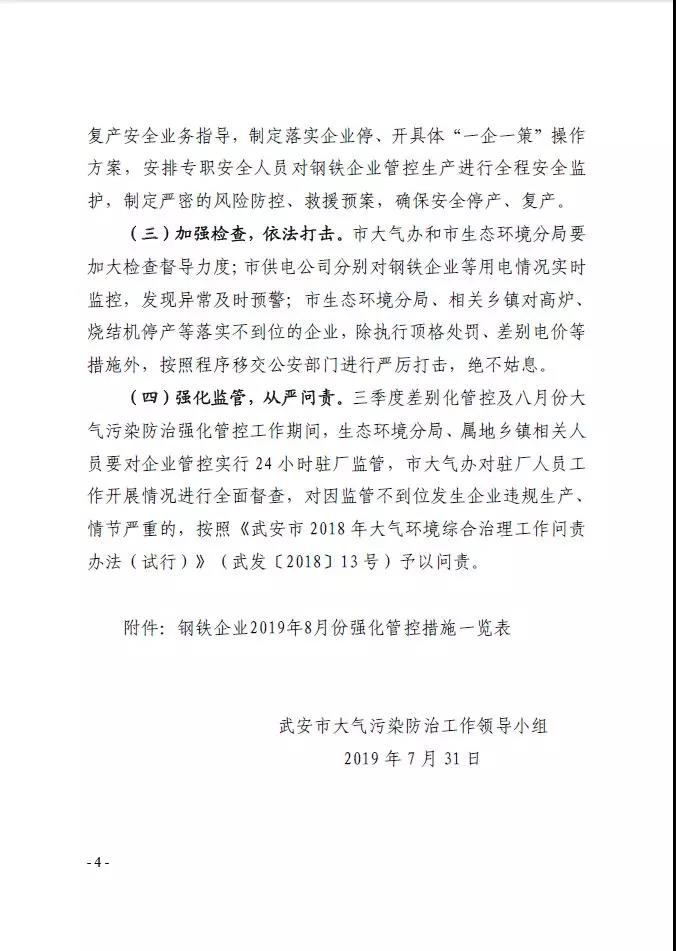 日前,武安市發(fā)布《武安市2019 年鋼鐵焦化水泥行業(yè) 八月份大氣污染防治強(qiáng)化管控實(shí)施方案》,涉及全市14家鋼鐵企業(yè),6家焦化企業(yè),2家水泥企業(yè)。詳情如下: